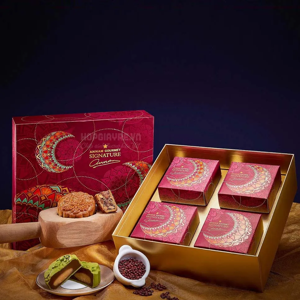 Chi tiết sản phẩm: Hộp bánh trung thu cao cấp ấn tượng - HCTT 0003 Kích thước tham khảo: 25x25x7cm Chất liệu sản phẩm: giấy Carton lạnh bồi giấy Couches. Chất liệu giấy cao cấp, sang trọng, cứng cáp, giúp bảo vệ sản phẩm an toàn tuyệt đối, cho dù có lực tác động từ bên ngoài. Gia công: cán mờ mặt ngoài, chống trầy xước và giúp sản phẩm sang trọng hơn. Có thể ép kim để làm nổi bật logo sản phẩm. Màu sắc: màu xanh ngọc hoặc màu hồng nhu ấn tượng, màu hoa văn nổi bật lên trên nền, đáy hộp sử dụng màu giả kim vàng càng làm cho hộp cực kì sang trọng. Thiết kế: sáng tạo, cổ điển, bắt mắt, lôi cuốn từ những mảng hình, hoa văn ý nghĩa. Quy cách hộp: là 1 dạng hộp cứng nắp trượt mở bao diêm hở 2 đầu. Hộp bánh trung thu cao cấp ấn tượng Nội dung cần thiết trên Hộp bánh trung thu cao cấp ấn tượng: Hình ảnh ý nghĩa Câu chúc Tên thương hiệu hoặc chữ ký Hopgiayre.vn chuyên cung cấp sản phẩm in hiện đại, tiên tiến nhất, mang lại những giá trị sản phẩm tốt nhất cho khách hàng. Để đặt hàng và được tư vấn thiết kế miễn phí, xin vui lòng liên hệ với chúng tôi qua: Hotline:0985 36 36 79 - Email: baogia@hopgiayre.vn