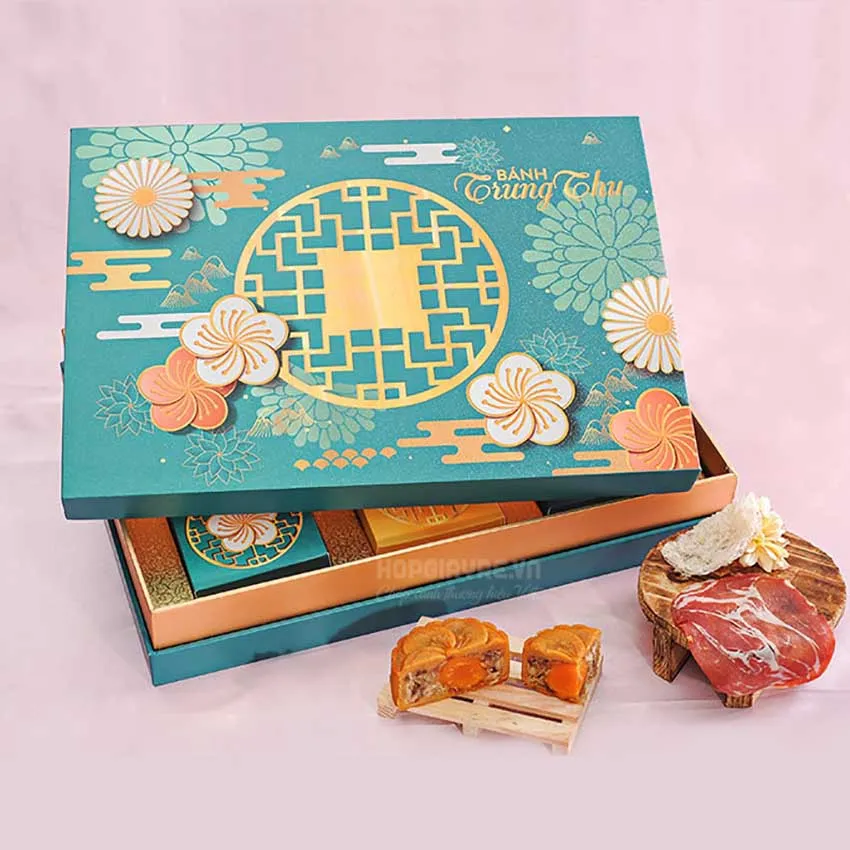 Chi tiết sản phẩm: Hộp bánh trung thu cao cấp hiện đại - HCTT 0006 Kích thước tham khảo: 25x25x7cm Chất liệu sản phẩm: giấy Carton lạnh bồi giấy Couches. Chất liệu giấy cao cấp, sang trọng, cứng cáp, giúp bảo vệ sản phẩm an toàn tuyệt đối,cho dù có lực tác động từ bên ngoài. Gia công: cán mờ mặt ngoài, chống trầy xước và giúp sản phẩm sang trọng hơn. Có thể ép kim, dập nổi để làm nổi bật logo, tên thương hiệu. Màu sắc: nền đỏ kết hợp màu hoa văn sáng nổi bật. Thiết kế: sang trọng, cổ điển, pha lẫn xu hướng, hiện đại. Tạo nên 1 vẻ đẹp khó cưỡng. Hoa văn ép nổi, tạo chiều sâu không gian gây cuốn hút. Quy cách hộp: là 1 dạng hộp cứng nắp mở âm dương có thành. Hộp bánh trung thu cao cấp hiện đại Nội dung cần thiết trên Hộp bánh trung thu cao cấp hiện đại: Hình ảnh ý nghĩa Logo, tên thương hiệu Hopgiayre.vn chuyên cung cấp sản phẩm in hiện đại, tiên tiến nhất, mang lại những giá trị sản phẩm tốt nhất cho khách hàng. Để đặt hàng và được tư vấn thiết kế miễn phí, xin vui lòng liên hệ với chúng tôi qua: Hotline:0985 36 36 79 - Email: baogia@hopgiayre.vn