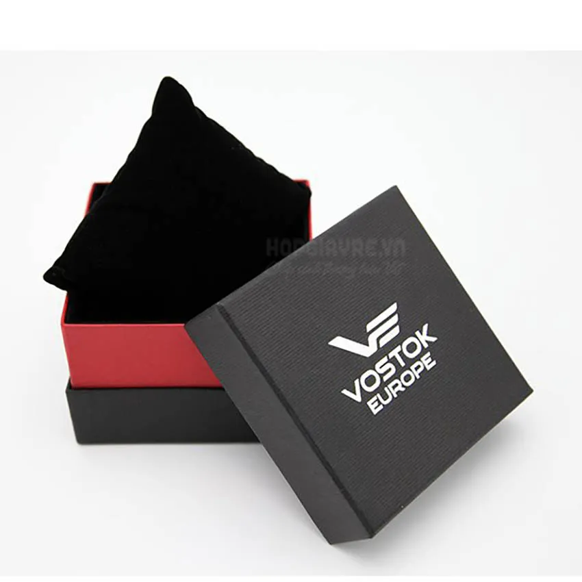 Chuyên sản xuất hộp cứng đựng đồng hồ theo yêu cầu – dạng âm dương nắp rời, bề mặt bọc giấy mỹ thuật vân sần cao cấp, viền trang trí tinh tế. Bên trong lót nhung hoặc xốp định hình ôm gọn đồng hồ, chống trầy xước mặt kính. Ép kim logo bạc/vàng sắc nét, cán màng mờ sang trọng. Nhận in từ 300 hộp, thiết kế miễn phí, giao hàng toàn quốc. Liên hệ báo giá – Hopgiayre.vn