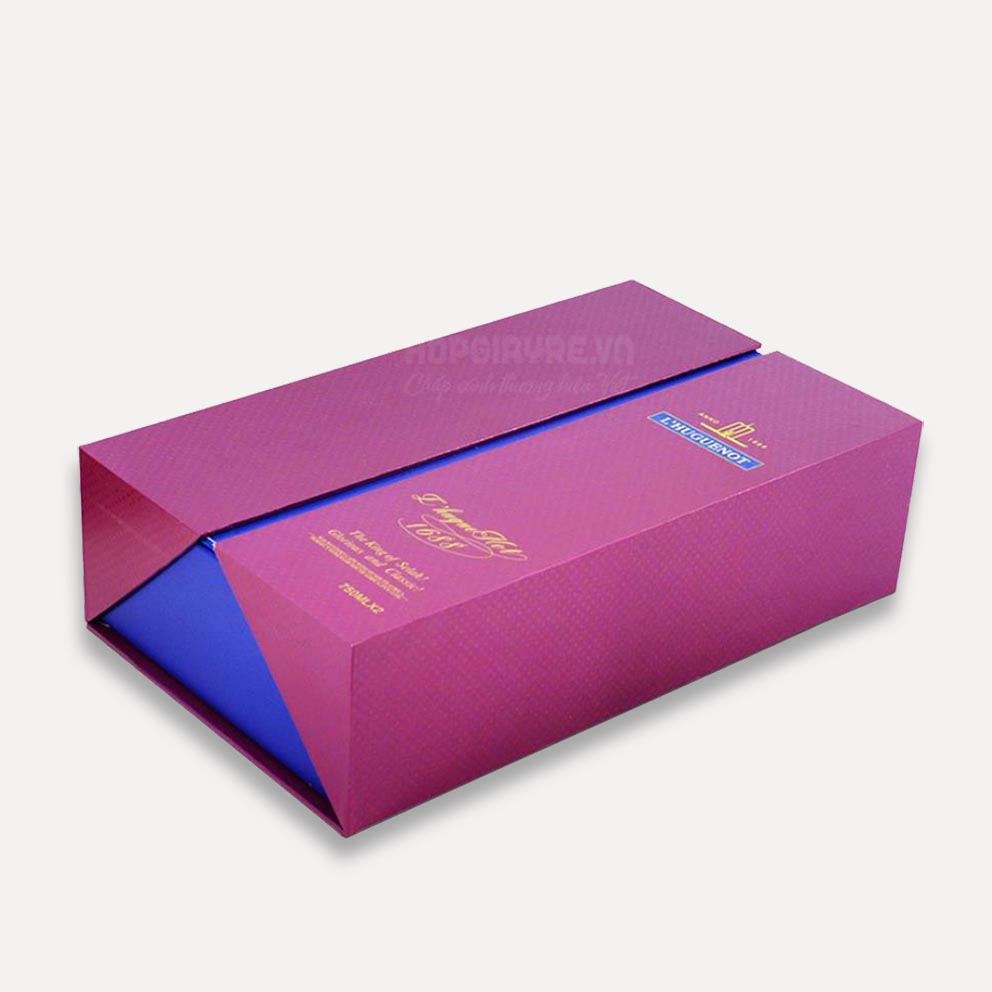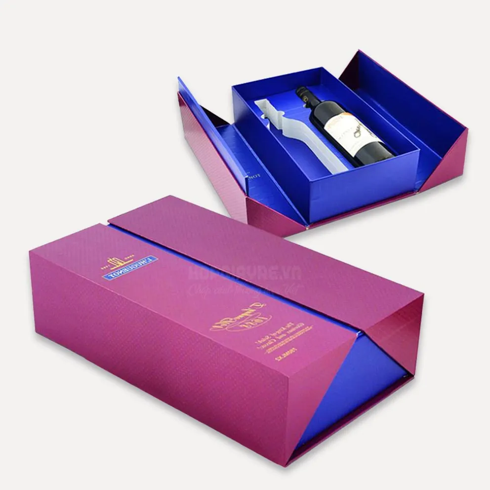 Chi tiết sản phẩm: Hộp đựng rượu cao cấp - HCR 0003 Kích thước tham khảo: 22x32x10cm Chất liệu sản phẩm: giấy Carton lạnh bồi giấy Couches. Chất liệu giấy cao cấp, dẻo dai, cứng cáp, giúp đựng và bảo vệ sản phẩm bên trong tốt nhất, không sợ va đập hay bể vỡ. Gia công: cán mờ mặt ngoài, chống trầy xước và giúp sản phẩm sang trọng hơn. Có thể ép kim để làm nổi bật logo và tên thương hiệu. Màu sắc: màu thời trang, cá tính. Thể hiện đẳng cấp. Tông màu dịu mắt, lôi cuốn. Thiết kế: kiểu hộp hiện đại, phong cách thời trang, cá tính. Sử dụng màu nền và chữ, không dùng hình ảnh. Hoa văn chìm cuốn hút. Quy cách hộp: là dạng hộp cứng nắp mở 2 nam châm. Hộp đựng rượu cao cấp Nội dung cần thiết trên Hộp đựng rượu cao cấp: Logo thương hiệu, tên thương hiệu. Thông tin, địa chỉ, hotline hỗ trợ khách hàng của nhà phân phối. Hopgiayre.vn chuyên cung cấp sản phẩm in hiện đại, tiên tiến nhất, mang lại những giá trị sản phẩm tốt nhất cho khách hàng. Để đặt hàng và được tư vấn thiết kế miễn phí, xin vui lòng liên hệ với chúng tôi qua: Hotline:0985 36 36 79 - Email: baogia@hopgiayre.vn