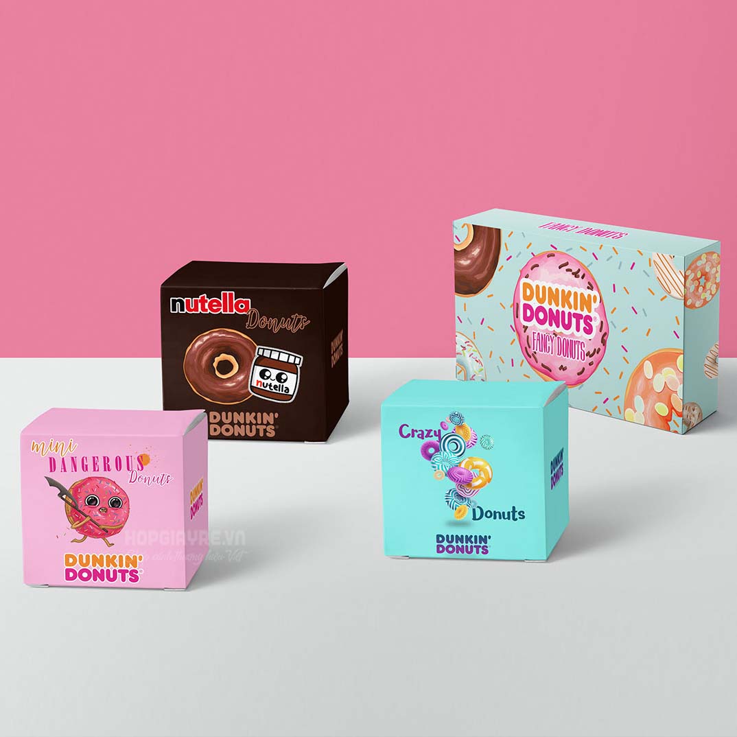 Chi tiết sản phẩm: Hộp giấy đựng bánh Donuts - HGBN 0003 Kích thước tham khảo: 8x12x5cm Chất liệu sản phẩm: giấy IVORY 350. Chất liệu giấy dày, cao cấp, không bụi, bảo quản và bảo vệ sản phẩm rất tốt. Gia công: cán bóng hoặc cán mờ mặt ngoài, tùy theo thiết kế. Giúp sản phẩm chống trầy và đẹp hơn. Màu sắc: nhẹ nhàng, lôi cuốn, chủ đạo. Thiết kế: làm nổi bật hình ảnh sản phẩm, gợi cảm giác thèm ăn, tên sản phẩm gây chú ý. Quy cách hộp: là dạng hộp 1 nắp mở 1 đáy gài, chắc chắn, tiện lợi cho việc tháo mở sản phẩm. Hộp giấy đựng bánh Donuts Những thông tin phải có trên Hộp giấy đựng bánh Donuts: Ngày sản xuất, hạn sử dụng. Thông tin, địa chỉ liên lạc của nơi sản xuất, hotline hỗ trợ chăm sóc khách hàng. Nguyên liệu sản phẩm, tên sản phẩm. Slogan. Hopgiayre.vn chuyên cung cấp sản phẩm in hiện đại, tiên tiến nhất, mang lại những giá trị sản phẩm tốt nhất cho khách hàng. Để đặt hàng và được tư vấn thiết kế miễn phí, xin vui lòng liên hệ với chúng tôi qua: Hotline:0985 36 36 79 - Email: baogia@hopgiayre.vn