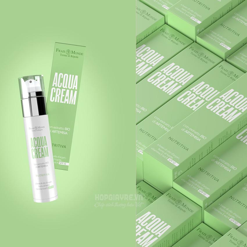 Chi tiết sản phẩm: Hộp kem dưỡng ẩm cho da - HGMP 0003 Kích thước: 4x12x4cm Chất liệu sản phẩm: giấy IVORY 350. Chất liệu giấy cao cấp giúp định hình form sản phẩm chắc chắn, chịu được lực mạnh, đảm bảo độ an toàn cho sản phẩm. Gia công: cán mờ mặt ngoài, phù hợp với sự tinh tế của sản phẩm và chống trầy xước. Có thể ép kim hoặc dập nổi để làm nổi bật tên của sản phẩm. Màu sắc: có 4 màu tương ứng với 4 công dụng của sản phẩm: thanh lọc, dưỡng ẩm cao, làm dịu và nuôi dưỡng da chống mẩn đỏ. Thiết kế: hiện đại, đơn giản, không cầu kì, chủ yếu nổi bật tên sản phẩm, tăng độ tin cậy cho người sử dụng. Quy cách hộp: là dạng hộp nắp mở 2 đáy, gọn gàng, tiện lợi. Hộp kem dưỡng ẩm cho da Aqua Cream Những thông tin không thể thiếu trên Hộp kem dưỡng ẩm cho da: Ngày sản xuất, hạn sử dụng. Thông tin, địa chỉ liên lạc của nhà cung cấp, hotline hỗ trợ chăm sóc khách hàng. Đặc tính, nguyên liệu, công dụng sản phẩm. Hướng dẫn sử dụng sản phẩm. Hopgiayre.vn chuyên cung cấp sản phẩm in hiện đại, tiên tiến nhất, mang lại những giá trị sản phẩm tốt nhất cho khách hàng. Để đặt hàng và được tư vấn thiết kế miễn phí, xin vui lòng liên hệ với chúng tôi qua: Hotline:0985 36 36 79 - Email: baogia@hopgiayre.vn