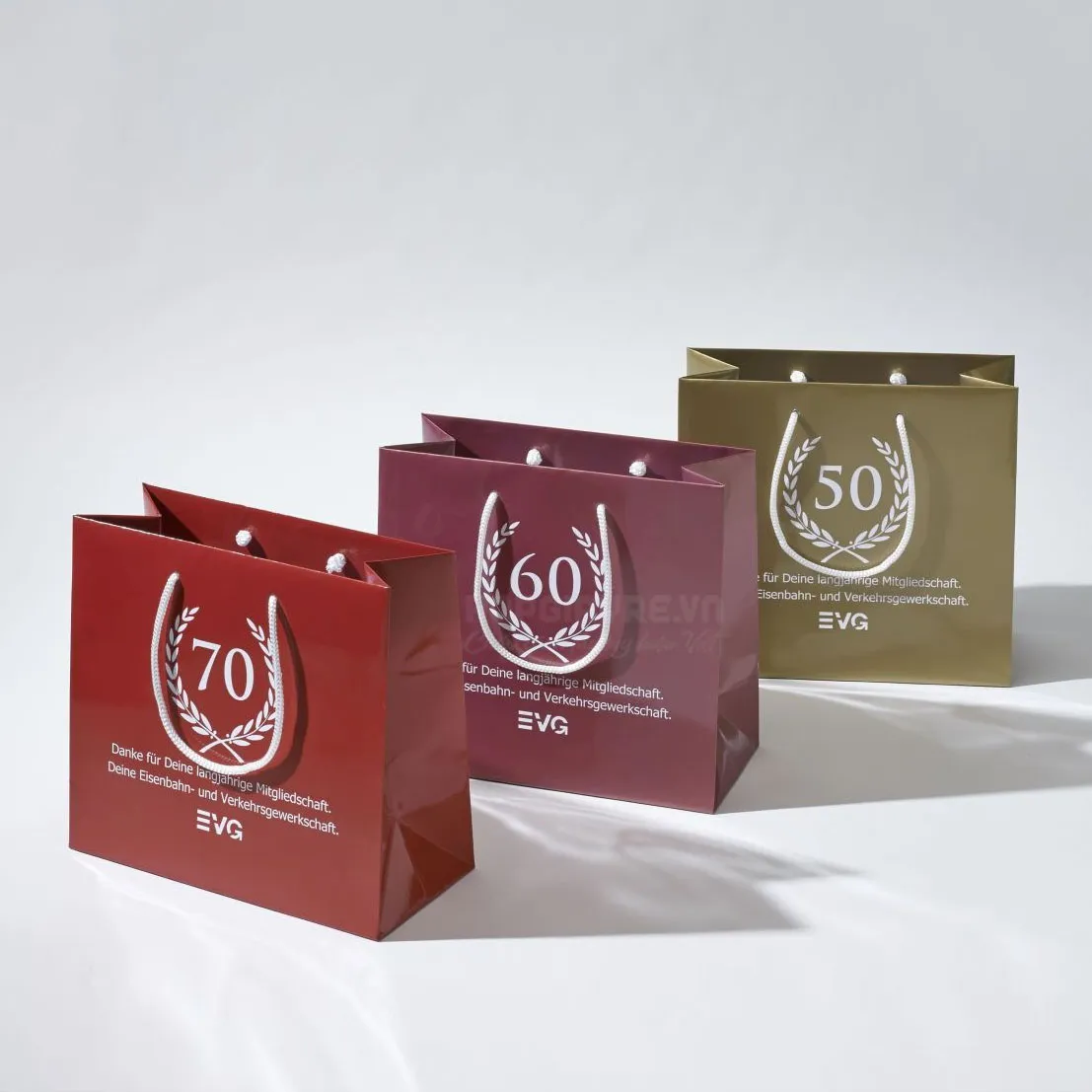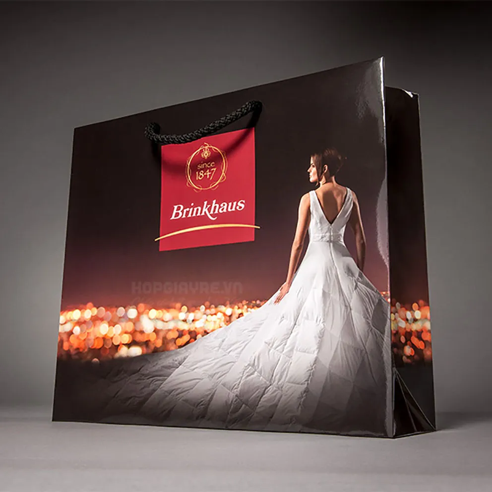 Chi tiết sản phẩm: Túi giấy cán bóng sang trọng - TGCB 0001 Kích thước tham khảo: 27x27x9cm Chất liệu sản phẩm: giấy Couches 300. Chất liệu giấy cao cấp, mang đến vẻ đẹp sang trọng cho sản phẩm. Gia công: cán bóng mặt ngoài, tạo vẻ ngoài bóng loáng kết hợp cùng thiết kế sang trọng, tạo nên 1 sản phẩm giá trị thực sự. Màu sắc: màu nổi bật, tông màu mạnh, cuốn hút, chỉ sử dụng 1 màu nền và tên thương hiệu sáng màu nổi lên trên màu nền. Thiết kế: đơn giản nhưng hiện đại, sang trọng, làm nổi bật và nhấn mạnh tên thương hiệu. Quy cách túi: là kiểu túi xỏ dây phổ biến. Túi giấy cán bóng sang trọng Nội dung cần thiết trên Túi giấy cán bóng sang trọng: Tên thương hiệu Logo thương hiệu, hoặc chữ ký. Hopgiayre.vn chuyên cung cấp sản phẩm in hiện đại, tiên tiến nhất, mang lại những giá trị sản phẩm tốt nhất cho khách hàng. Để đặt hàng và được tư vấn thiết kế miễn phí, xin vui lòng liên hệ với chúng tôi qua: Hotline:0985 36 36 79 - Email: baogia@hopgiayre.vn