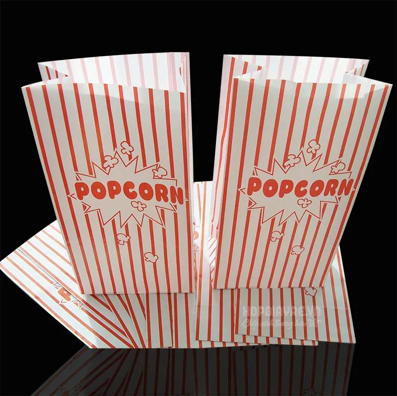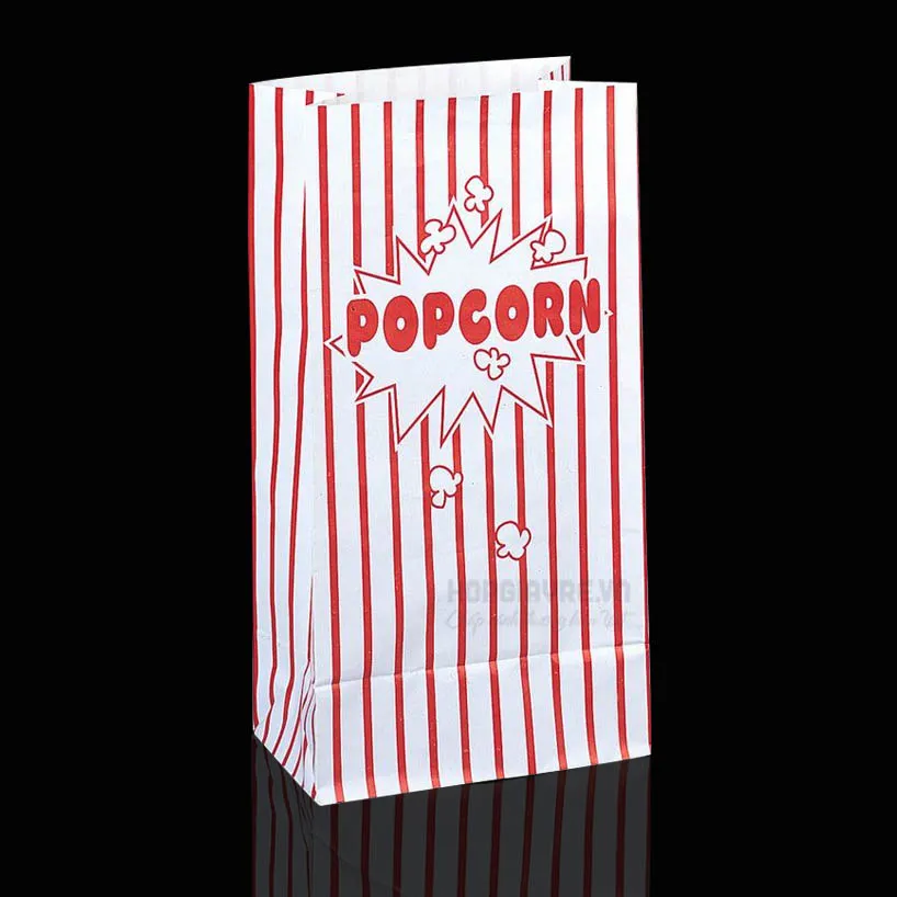 Chi tiết sản phẩm: Túi giấy đựng bắp rang bơ - TGTP 0003 Kích thước tham khảo: 15x20x11cm Chất liệu sản phẩm: giấy Couches. Chất liệu giấy cao cấp, không bụi, rất phù hợp khi đựng bắp rang nóng mới ra lò. Gia công: không cán màng, do đặc thù sản phẩm. Màu sắc: sử dụng gam màu ấm, vàng, cam đất hoặc đỏ đô. Thiết kế: đơn giản, hình ảnh minh họa bắp rang, nền hoa văn dày đặt, tạo cảm giác túi đầy bắp rang. Quy cách túi: là kiểu túi cầm tay không xỏ dây. Túi giấy đựng bắp rang bơ Nội dung cần thiết trên Túi giấy đựng bắp rang bơ: Tên thương hiệu Logo thương hiệu, hoặc chữ ký. Địa chỉ, website, hotline của cửa hàng, cửa hiệu. Hopgiayre.vn chuyên cung cấp sản phẩm in hiện đại, tiên tiến nhất, mang lại những giá trị sản phẩm tốt nhất cho khách hàng. Để đặt hàng và được tư vấn thiết kế miễn phí, xin vui lòng liên hệ với chúng tôi qua: Hotline:0985 36 36 79 - Email: baogia@hopgiayre.vn