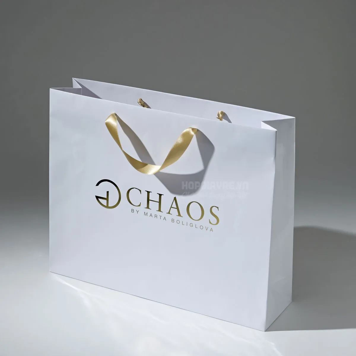 Chi tiết sản phẩm: Túi giấy ép kim đơn giản - TGEK 0001 Kích thước tham khảo: 30x20x10cm Chất liệu sản phẩm: giấy Couches 300. Chất liệu giấy cao cấp, mang đến vẻ đẹp sang trọng cho sản phẩm. Gia công: cán mờ mặt ngoài, chống trầy, kết hợp với ép kim tên thương hiệu nổi bật. Màu sắc: màu cơ bản, màu dịu nhẹ, sử dụng nền 1 màu, và 1 màu nhũ của tên thương hiệu. Thiết kế: đơn giản, phần nội dung ép kim phóng to, kiểu cách sang trọng. Quy cách túi: là kiểu túi xỏ dây phổ biến. Túi giấy ép kim đơn giản Nội dung cần thiết trên Túi giấy ép kim đơn giản: Tên thương hiệu Logo thương hiệu, hoặc chữ ký. Hopgiayre.vn chuyên cung cấp sản phẩm in hiện đại, tiên tiến nhất, mang lại những giá trị sản phẩm tốt nhất cho khách hàng. Để đặt hàng và được tư vấn thiết kế miễn phí, xin vui lòng liên hệ với chúng tôi qua: Hotline:0985 36 36 79 - Email: baogia@hopgiayre.vn