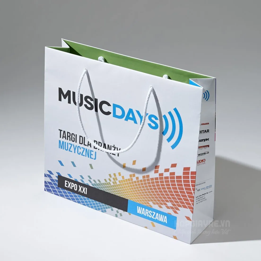 Chi tiết sản phẩm: Túi giấy phụ kiện thời trang nổi bật - TGTT 0002 Kích thước tham khảo: 25x20x9cm Chất liệu sản phẩm: giấy Couches 300. Chất liệu giấy cao cấp, sang trọng, phù hợp với những sản phẩm thời trang, sành điệu. Gia công: cán bóng mặt ngoài, giúp sản phẩm bóng đẹp và chống trầy xước túi. Màu sắc: pha trộn nhiều màu, mạnh mẽ, màu cá tính nổi bật. Thiết kế: hiện đại, theo xu hướng, hình ảnh minh họa sản phẩm nổi bật, tên thương hiệu và slogan sản phẩm cũng phải được nhấn mạnh và gây chú ý. Quy cách túi: là kiểu túi xỏ dây phổ biến. Túi giấy phụ kiện thời trang nổi bật Nội dung cần thiết trên Túi giấy phụ kiện thời trang nổi bật: Tên thương hiệu, slogan. Logo thương hiệu, hoặc chữ ký. Thông tin, địa chỉ liên lạc, hotline, fanpage của shop bán phụ kiện. Hopgiayre.vn chuyên cung cấp sản phẩm in hiện đại, tiên tiến nhất, mang lại những giá trị sản phẩm tốt nhất cho khách hàng. Để đặt hàng và được tư vấn thiết kế miễn phí, xin vui lòng liên hệ với chúng tôi qua: Hotline:0985 36 36 79 - Email: baogia@hopgiayre.vn